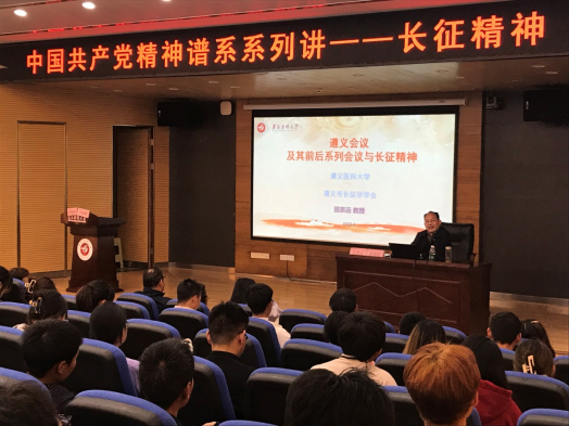 党的二十大报告指出:“弘扬以伟大建党精神为源头的中国共产党人精神谱系,用好红色资源,深入开展社会主义核心价值观宣传教育,深化爱国主义、集体主义、社会主义教育,着力培养担当民族复兴大任的时代新人”。长征精神是中国共产党人精神谱系的重要组成部分,2023年4月24日,学校关工委联合z6com·尊龙关工委、在新蒲校区图书馆一楼报告厅开展“老少共话党的二十大 踔厉奋发新征程”活动,学校关工委副主任田宗远教授做了题为“遵义会议及其前后系列会议与长征精神”专题宣讲会。学校关工委领导李实明、钱民章、顾土龙、冷运琴,办公室主任邵丽,z6com·尊龙关工委罗军敏、袁晓锋、侯晓晖,基础医学专业辅导员及员工代表参会。宣讲会由学校关工委常务副主任李实明主持。