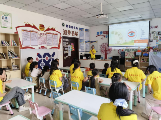 实践队在视力健康知识宣讲环节讲解了日常用眼注意事项与常见视力问题,进行了基础视力测试,并教授了护眼手指舞的标准动作,引导孩子们在了解自身视力状况下正确用眼、科学护眼。在传染病防控知识宣讲环节中结合小视频、动画和细菌培养小实验,介绍了生活中常见传染病的传播途径与预防措施,从而增强卫生意识和健康防护能力。