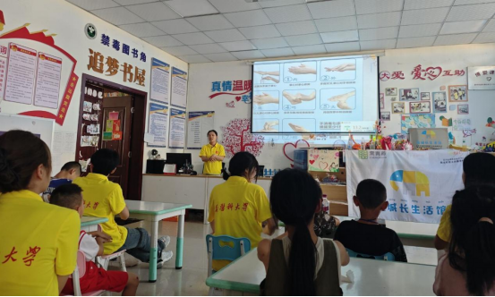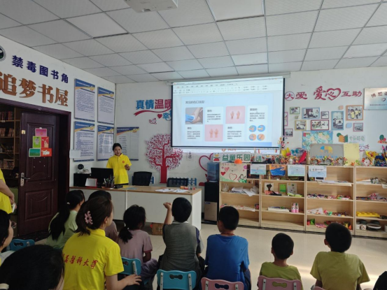 实践队员围绕“七步洗手法”“口腔健康”等主题,面向社区儿童开展了健康知识科普讲座。通过理论讲解、现场示范、互动提问和口腔健康绘画等形式,帮助孩子们掌握了科学洗手步骤与牙齿清洁方法,寓教于乐地加深了对健康习惯的理解。