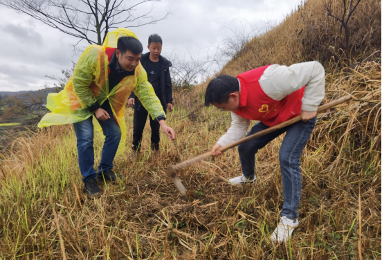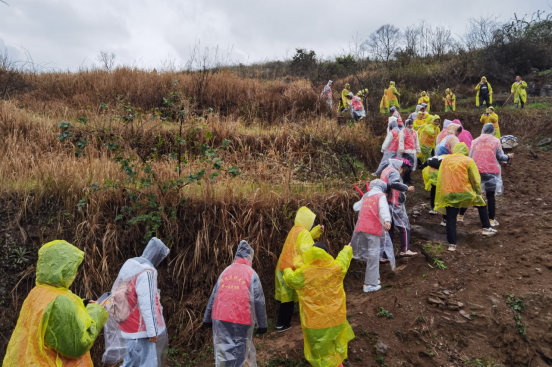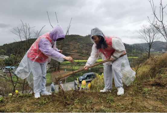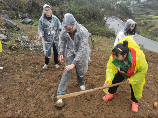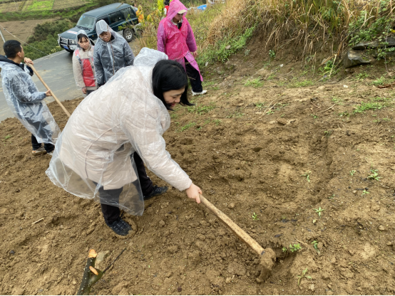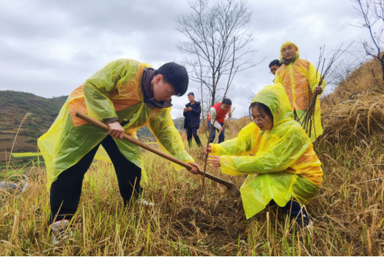 雨中植树忙,不负好时光。各学院领导、辅导员与员工代表50余人,前往遵义市湘江村开展义务植树造林活动,活动现场,新中街道办经发中心主任张绍东与湘江村党支部书记丁汉俊向师生简要介绍了乡村振兴相关政策与湘江村的基本情况,农业技术人员向大家详细讲解了蜂糖李树苗的种植方法与注意事项,在技术人员指导下,大家密切配合、通力合作,挥锹铲土、扶树正苗,培土围堰,淅淅沥沥的春雨,丝毫没有影响劳动的热情,经过一番辛勤劳作,师生与湘江村村民共种植了300棵李子树苗。“春天播种希望,四季收获快乐,此次活动中,让我切实感受到了劳动的意义所在,相信我们的生活环境会越来越多姿多彩,更加绿色生态!”来自临床医学专业的罗斗胜同学如是说。