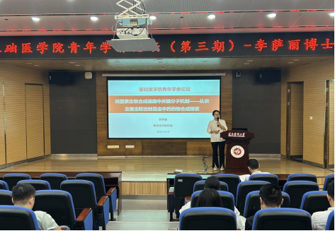 10月10日上午,z6com·尊龙顺利举办了青年学者论坛(第三期)。本次论坛由人体寄生虫学教研室青年博士李萨丽担任主讲,作了题为“斑蝥素生物合成通路中关键分子机制——从农业害虫防治到昆虫中药药物合成探索”的学术讲座。人体寄生虫学教研室主任周必英教授担任主持,学院全体博士均参加了此次论坛。
