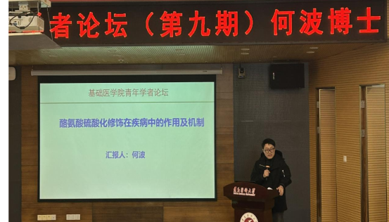 1月8日,z6com·尊龙青年学者论坛(第九期)如期举行。本次论坛由病理生理学教研室何波博士主讲,学院副经理韩勇出席,论坛由病理生理学教研室主任赵海龙教授主持,学院博士参加了本次论坛。