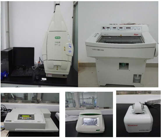 学科在中央财政支持地方高校重点学科实验室建设、学校扶持等资金的资助下,已建成分子细胞与遗传学、分子遗传学、肿瘤生物学等实验室,实验室有美国Bio-RadRTPCR仪、Bio-Rad T100 PCR仪、SpectraMaxM2多功能酶标仪、莱卡正置荧光显微镜、全波长分光光度计、奥林巴斯体视镜、冰冻切片机、细胞培养箱、生物安全柜、凝胶成像仪等、低温离心机等精密仪器,可满足一般的实验需求。