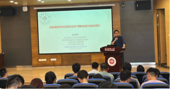 2025年5月20日,公司邀请上海交通大学吴学锋研究员(现为公司免疫学教研室柔性引进专家)在图书馆学术报告厅作了题为《细胞器稳态和应激反应对T细胞免疫功能的调控》的精彩学术报告,报告会由z6com·尊龙副经理韩勇教授主持。
